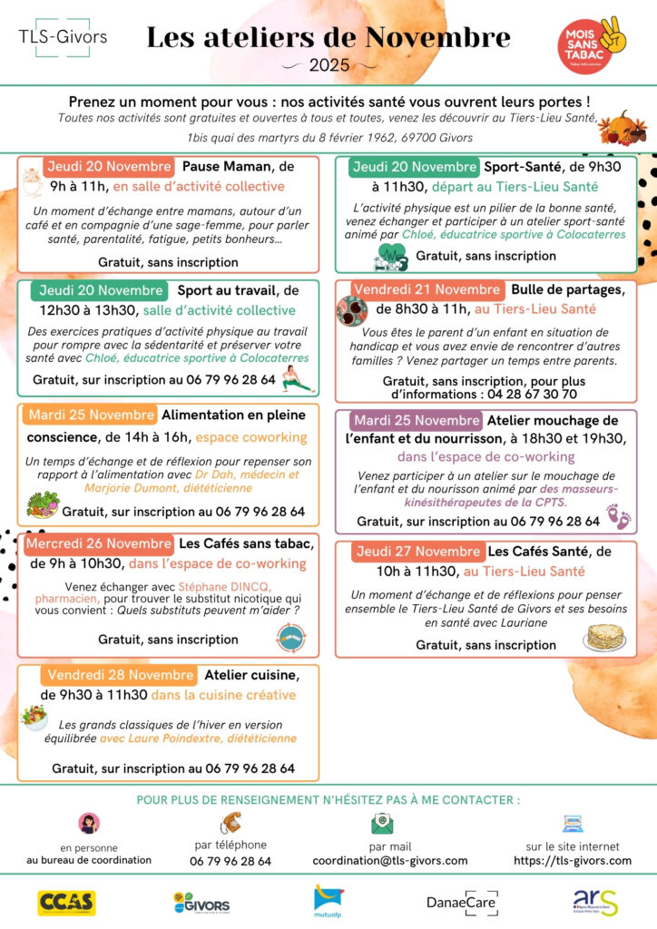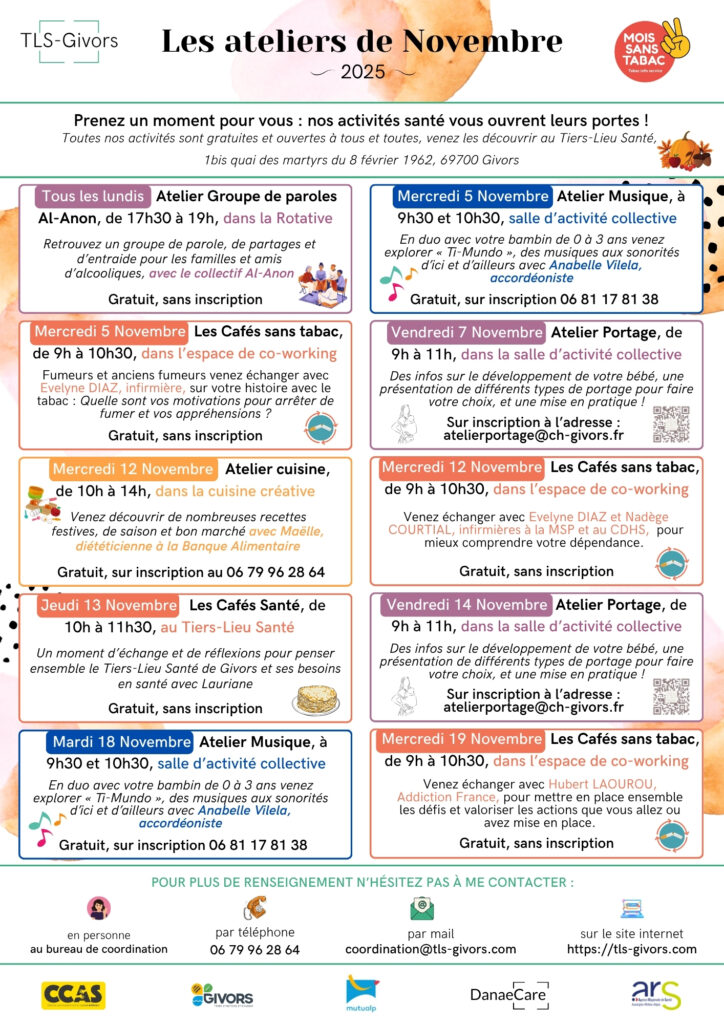 Prenez un moment pour vous : nos activités santé vous ouvrent leurs portes ! Toutes nos activités sont gratuites et ouvertes à tous et toutes, venez les découvrir au Tiers-Lieu Santé, 1bis quai des martyrs du 8 février 1962, 69700 Givors