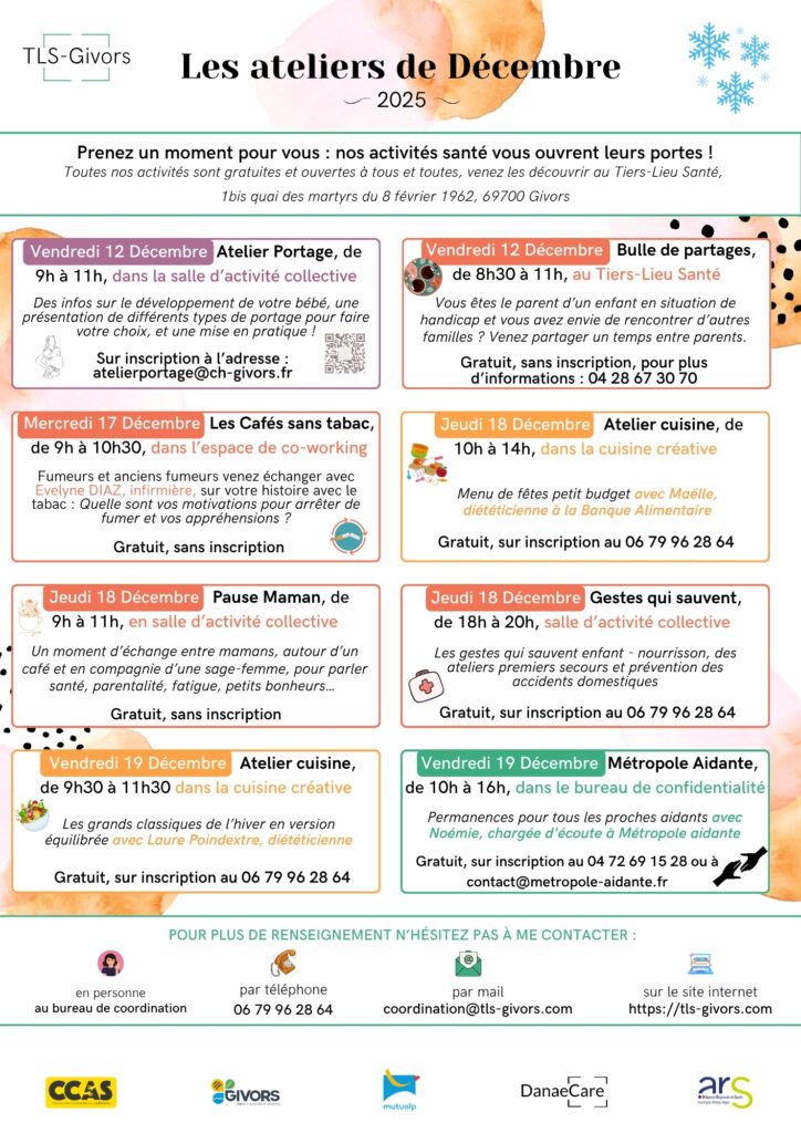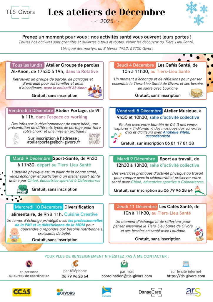 Prenez un moment pour vous : nos activités santé vous ouvrent leurs portes ! Toutes nos activités sont gratuites et ouvertes à tous et toutes, venez les découvrir au Tiers-Lieu Santé, 1bis quai des martyrs du 8 février 1962, 69700 Givors