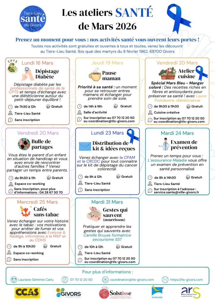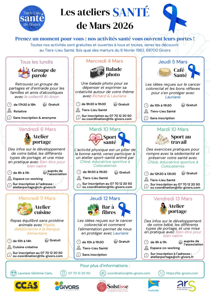 Prenez un moment pour vous : nos activités santé vous ouvrent leurs portes ! Toutes nos activités sont gratuites et ouvertes à tous et toutes, venez les découvrir au Tiers-Lieu Santé, 1bis quai des martyrs du 8 février 1962, 69700 Givors